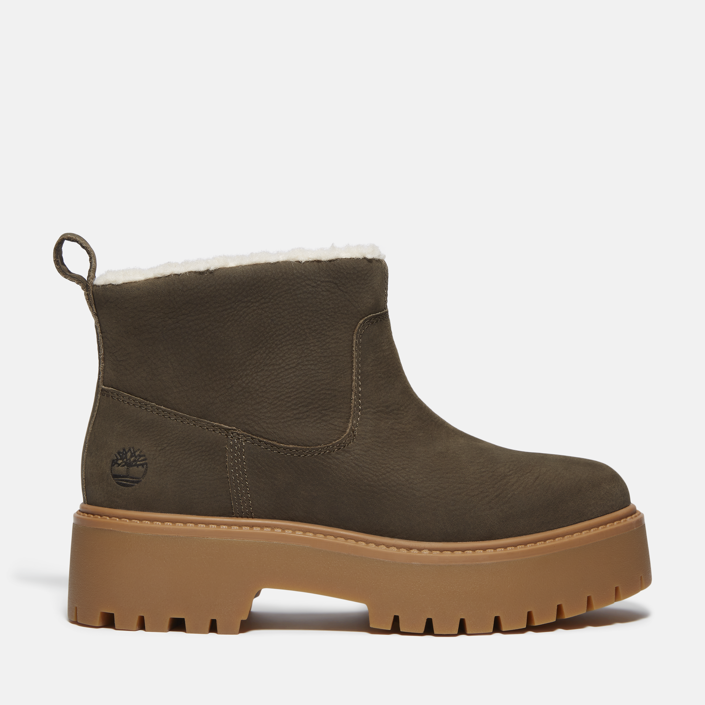 Premium Timberland® koža na ženskoj Stone Street toploj platformi čizmi spaja izdržljiv stil i udobnost. Umjetno krzno i ReBOTL™ podstava sadrže najmanje 50% reciklirane plastike, a 10% gume u potplatu potječe s farmi koje primjenjuju regenerativnu poljoprivredu. Praktičan „pull-on” dizajn omogućuje jednostavno obuvanje, dok OrthoLite® uložak pomaže u odvođenju vlage, pruža antimikrobnu zaštitu protiv neugodnih mirisa i dugotrajnu udobnost. Poliuretanska srednji potplat i čelična potpora luka stopala osiguravaju pouzdanu stabilnost na svakom terenu.
